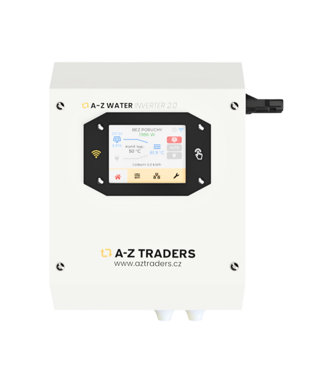Jednotka A-Z WATER 2.0 ponúka plne farebný grafický dotykový LCD displej, ktorý prehľadne informuje o prevádzkových stavoch a parametroch celého systému. Ovládanie je maximálne prehľadné a jednoduché vďaka využitiu grafických prvkov, ktoré intuitívne predstavujú jednotlivé funkcie. Okrem grafického ovládania a zobrazenia režimu funkcie je k dispozícii aj presné meranie parametrov FVE vrátane hodnoty celkového výkonu dodaného z FV panelov do akumulačnej nádrže.