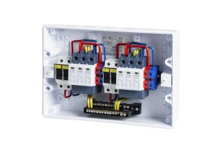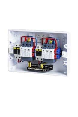 DC rozváděč v ochranné třídě 1+2 určený pro montáž na zeď, IP40 sloužící jako vstupní rozváděč od fotovoltaických panelů (ke střídači) pro celé portfolio fotovoltaických elektráren.
