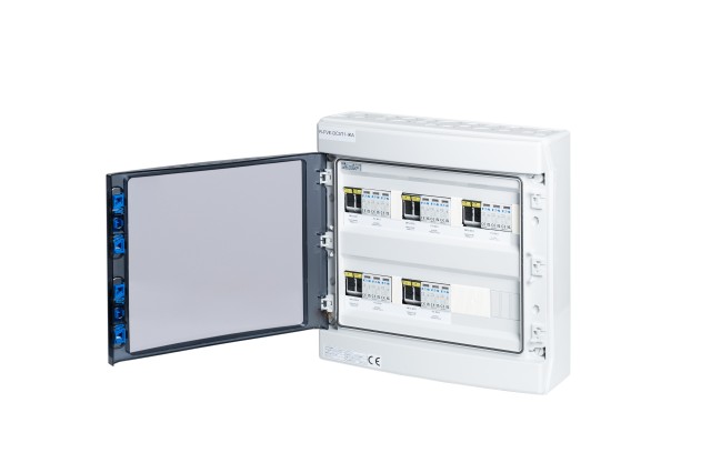 DC rozvádzač určený pre montáž na stenu, IP65/20 slúžiaci ako vstupný rozvádzač od fotovoltaických panelov (ku striedaču) pre celé portfólio fotovoltaických elektrární.