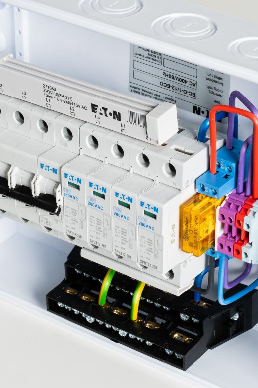 V rozvádzači je osadený zvodič prepätia AC T1+T2, istič B16/3 na istenie vstupu do striedača. Ďalej Istič B2/1, ktorý istí PATICI/RELE Finder, ktoré zaisťuje N0% pre splnenie podmienok distribúcií (súčasťou je ako NC, tak NO kontakt a stred.) Čím je zaistené použitie pre všetky typy meničov na trhu.