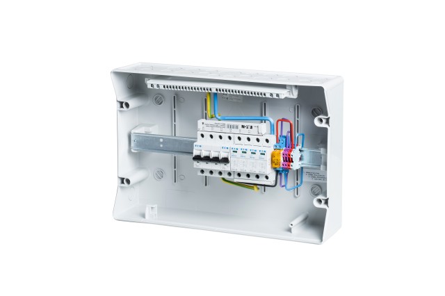 Vhodné kombinovať s rozvádzačom R-FVE-DC2T1-IKA, R-FVE-DC3T1-IKA pre jednosmernú časť inštalácie a rozvádzačmi R-FVE-A40-2 pre zálohované okruhy s manuálnym prepínačom (premostenie striedača), alebo rozvádzačom R-FVE-Z4 s prúdovým chráničom, zásuvkami a istením.