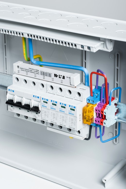 V rozvádzači je osadený zvodič prepätia AC T1+T2, istič B32/3 pre istenie vstupu do striedača. Ďalej Istič B2/1 ktorý istí PATICI/RELE Finder, ktoré zaisťuje N0% pre splnenie podmienok distribúcií (súčasťou je ako NC, tak NO kontakt a stred.) Čím je zaistené použitie pre všetky typy meničov na trhu.