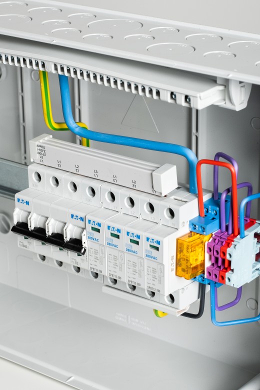V rozvádzači je osadený zvodič prepätia AC T1+T2, istič B40/3 pre istenie vstupu do striedača. Ďalej Istič B2/1 ktorý istí PATICI/RELE Finder, ktoré zaisťuje N0% pre splnenie podmienok distribúcií (súčasťou je ako NC, tak NO kontakt a stred.) Čím je zaistené použitie pre všetky typy meničov na trhu.