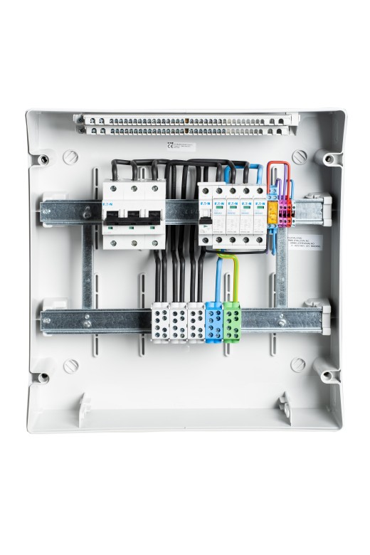 V rozvádzači je osadený zvodič prepätia AC T1+T2, istič B80/3 pre istenie vstupu do striedača. a stred.) Čím je zaistené použitie pre všetky typy meničov na trhu.