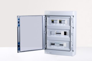 AC+DC rozvádzače určené pre montáž na stenu, IP65 slúžiace na obsluhu trojfázovej fotovoltaickej elektrárne (typicky striedač Goodwe 4 až 10K-ET).
