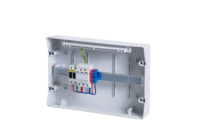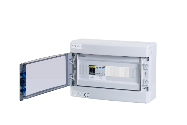 DC rozvádzač určený pre montáž na stenu, IP65, slúži ako vstupný rozvádzač od fotovoltaických panelov (k striedaču) pre celé portfólio fotovoltaických elektrární. Najmä pri použití ostatných rozvádzačov taktiež EATON IKA.