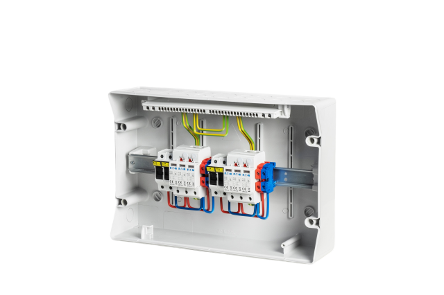 DC rozvádzač určený pre montáž na stenu, IP65, slúži ako vstupný rozvádzač od fotovoltaických panelov (k striedaču) pre celé portfólio fotovoltaických elektrární. Najmä pri použití ostatných rozvádzačov taktiež EATON IKA.