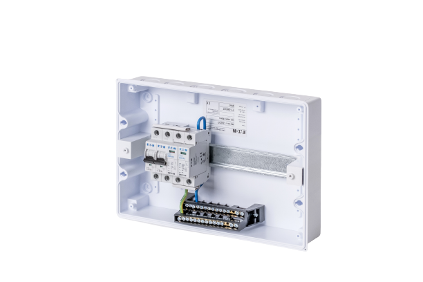 AC rozvádzač určený pre montáž na stenu, IP40/20 slúžiaci ako vstupný rozvádzač (pri striedači) pre jednofázové fotovoltaické elektrárne (typicky striedač Goodwe 1000-XS až 3000-XS a Goodwe radu 3000D-NS až 3600D-NS).