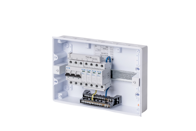 Vhodné kombinovať s rozvádzačom R-FVE-DC1, R-FVE-DC2 pre jednosmernú časť inštalácie a rozvádzačmi R-FVE-M5+P3F pre zálohované okruhy s manuálnym prepínačom (premostenie striedača) a chráničom, alebo rozvádzačom R-FVE-Z3 s prúdovým chráničom, zásuvkami a istením.